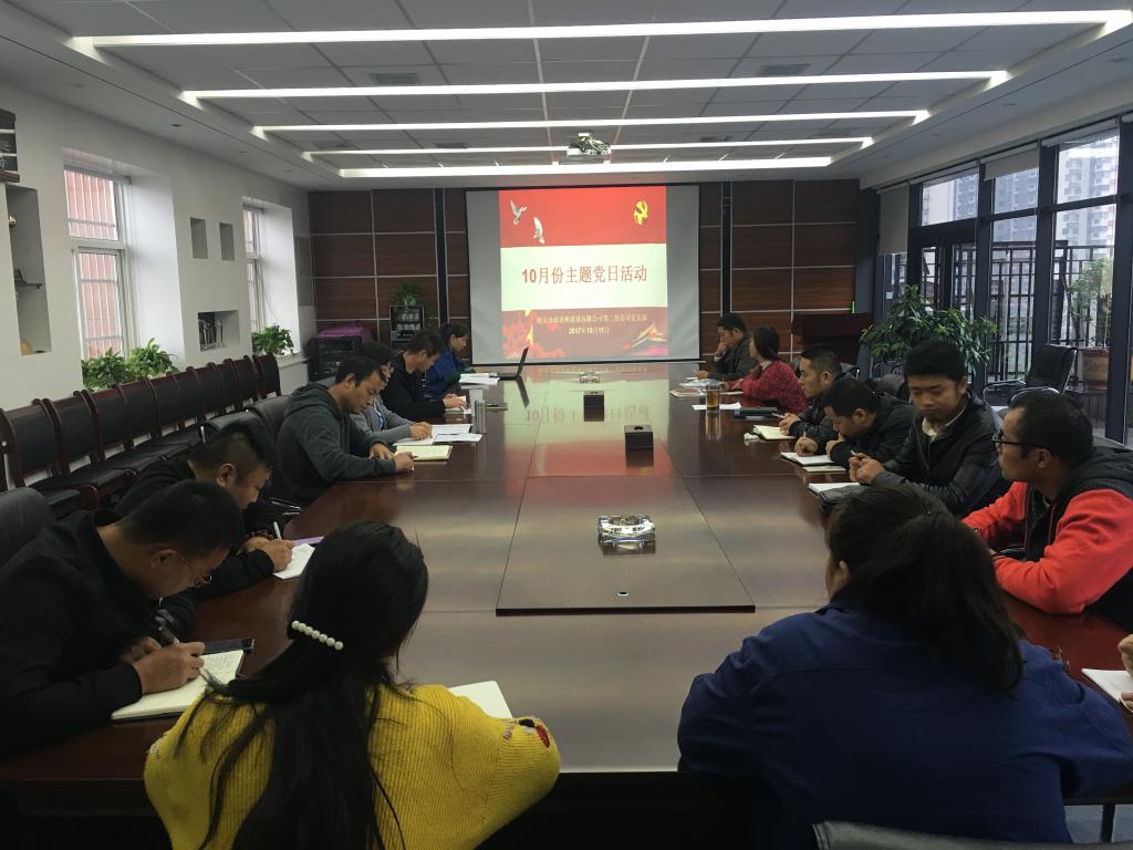 10月11日下午,道桥二分公司党支部组织开展固定党日活动,全体党员参加。首先,支部书记陈晓鹏带领大家重温入党誓词,随后牟正平同志诵读了党章第六章《党的干部》,接着贾波同志宣读学习了市政管办函(2017)11号文件《关于在全局开展“习近平的七年知青岁月”学思践悟专项学习教育方案》的通知,姚雪萍同志诵读《习近平的七年知青岁月》--为群众做实事是习近平始终不渝的信念。