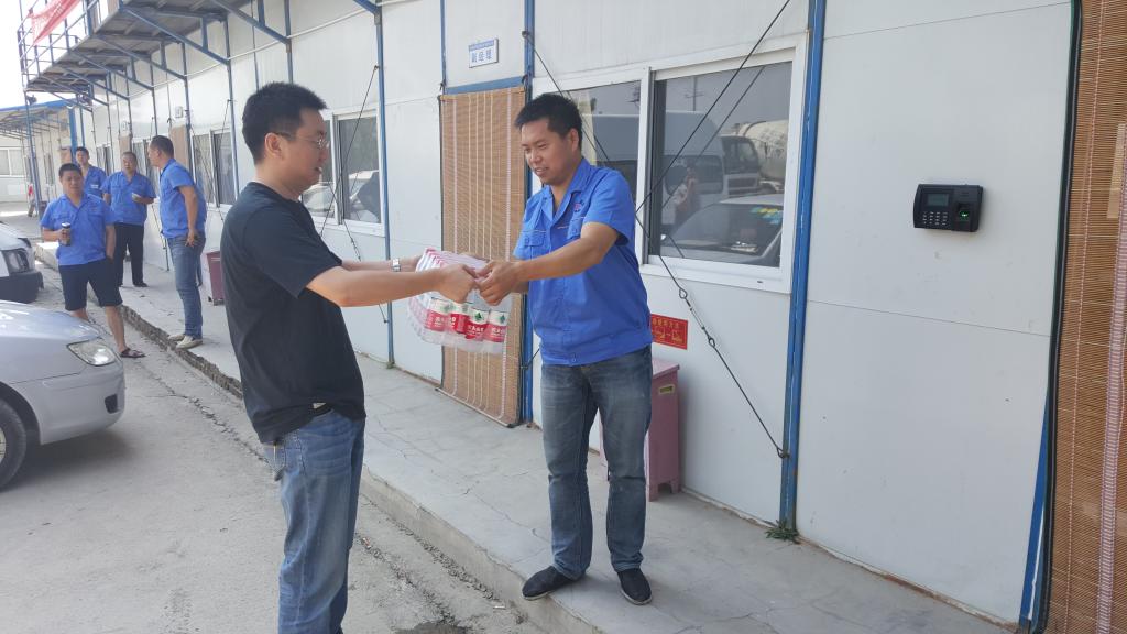 7月29日,西安市政道桥建设有限公司沥青搅拌厂厂长姚光明带队来到渭北商砼站和搅拌站慰问了高温下工作在一线的职工,感谢他们不畏炎热坚守岗位的辛勤付出,并送上慰问品。同时,要求两站进一步做好防暑降温工作,确保职工的身体健康和工作有条不紊地开展。
