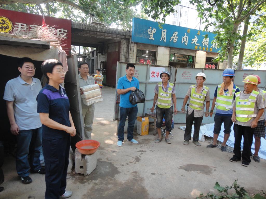 近来,连续高温天气,给施工人员和工人带来了很大的挑战,但是他们依然坚守在一线。邓晓青总工带领设施局生产科,安管科及工会对我公司管网改造工地工作人员进行了慰问,叮嘱施工人员要调整好出工时间,避开高温作业,做好安全保护工作和防暑降温工作,注意饮食卫生,并给大家发放了毛巾、藿香正气水等防暑降温物品。
