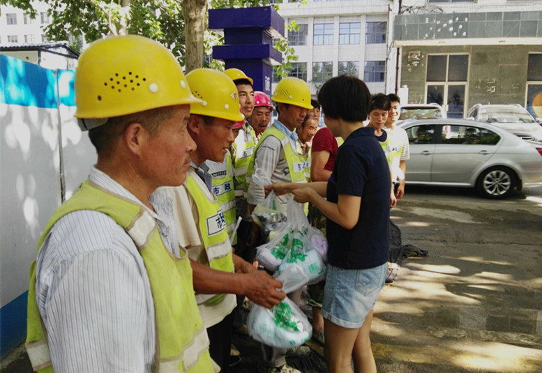 近日,我市出现持续高温天气。为切实做好高温天气期间施工安全生产工作,保障施工一线作业人员人身安全和健康,城区公司组织慰问黄雁村、大学南路、东四路、城河通水等施工现场一线的施工人员,送去了毛巾、茶叶、藿香正气水等防暑降温用品和药品。并要求切实做好防暑降温工作,避开高温,合理安排好施工作业时间,做好必要的防暑降温和安全保障措施,确保安全生产无事故。