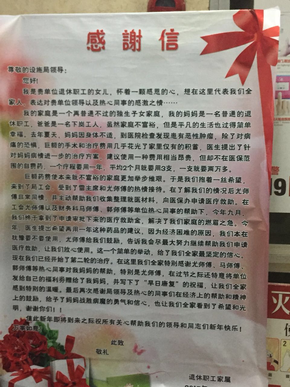 2017年局工会紧密围绕全心全意为职工服务这一宗旨积极主动地开展工作,在局财务科的大力支持下圆满的完成了职工医疗保险工作,受到了广大职工的好评和表扬。全年共为20位职工办理零星报销182450.02元,为7名职工办理生育保险报销26653元,为四名重病职工办理公务员医疗救助155000元,为122名职工办理慢性病报销730154.02元,总计95万4千余元。