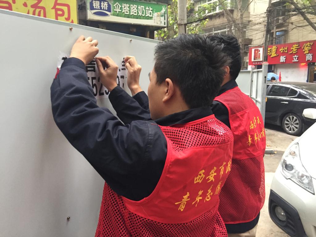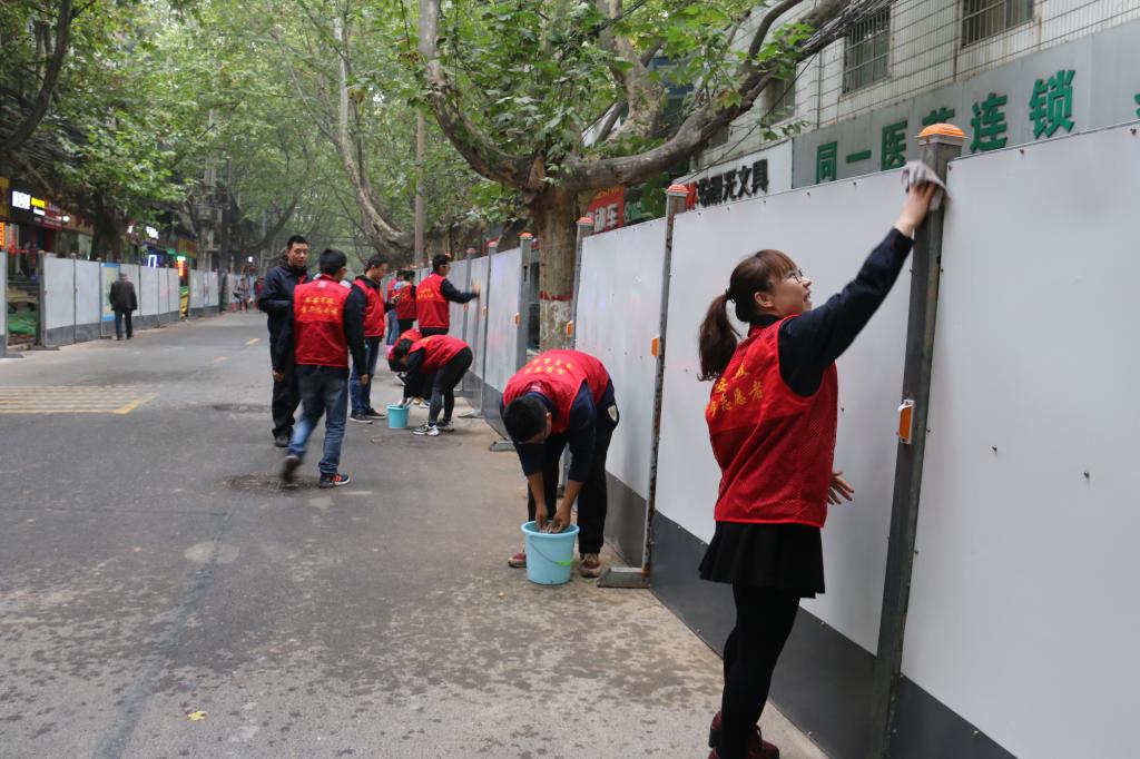 本次活动的主要内容是擦洗在建工地的围挡即“彩钢板”,其中不少 “彩钢板”被张贴了不少小广告,志愿者们通过一上午的努力终于为干净、美丽的城市环境贡献出了自己的一份力量。