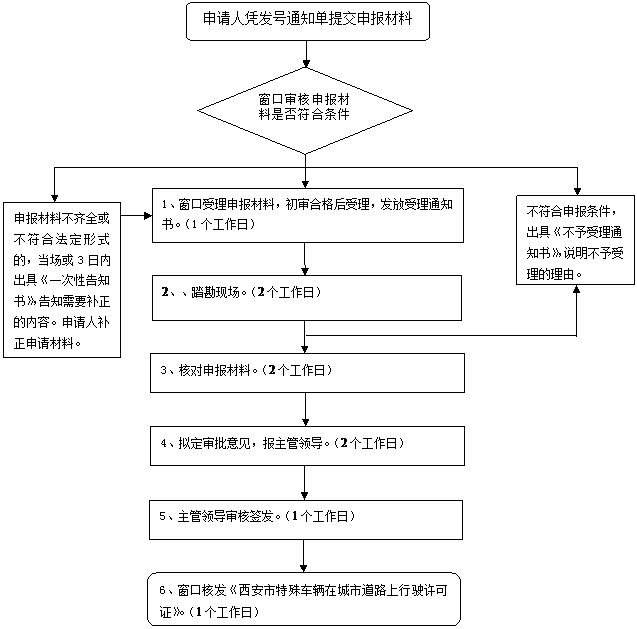 6、申请人到市政公用局窗口领取《西安市特殊车辆在城市道路上行驶许可证》;