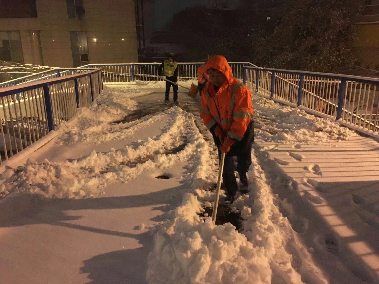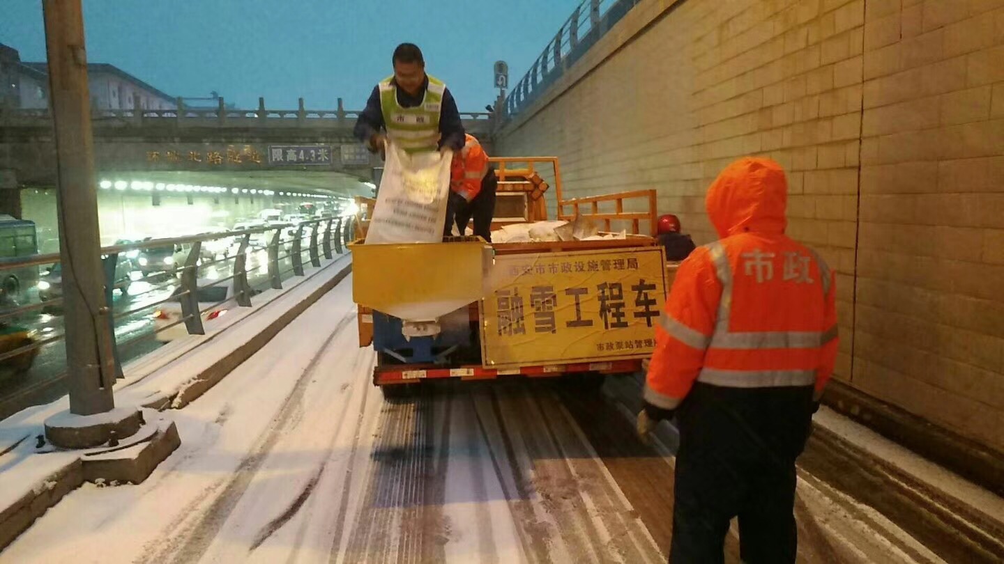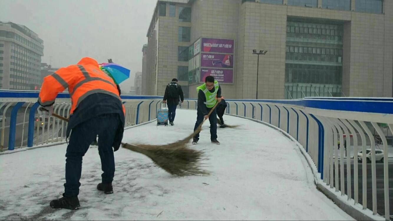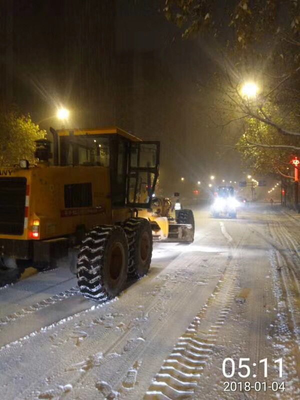 我市于1月3日下午15时许迎来2018年初次降雪,根据降雪情况,设施局于1月3日下午17时和4日凌晨4时两次通过设施局监控指挥中心发布融雪任务指令,各责任单位对所辖区域内立交桥、地下通道、人行天桥及重要路段进行加强巡视。由于本次降雪持续时间长、降雪量大,为确保设施安全运行,设施局各责任单位分别于3日下午17时、晚上22时、4日凌晨4时三次集中进行消除冰雪工作,防止路面结冰。