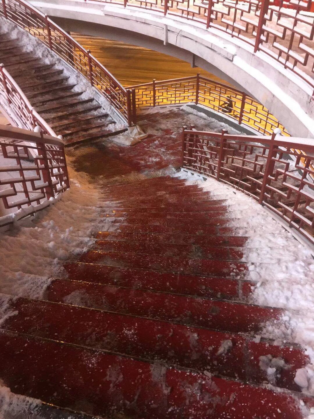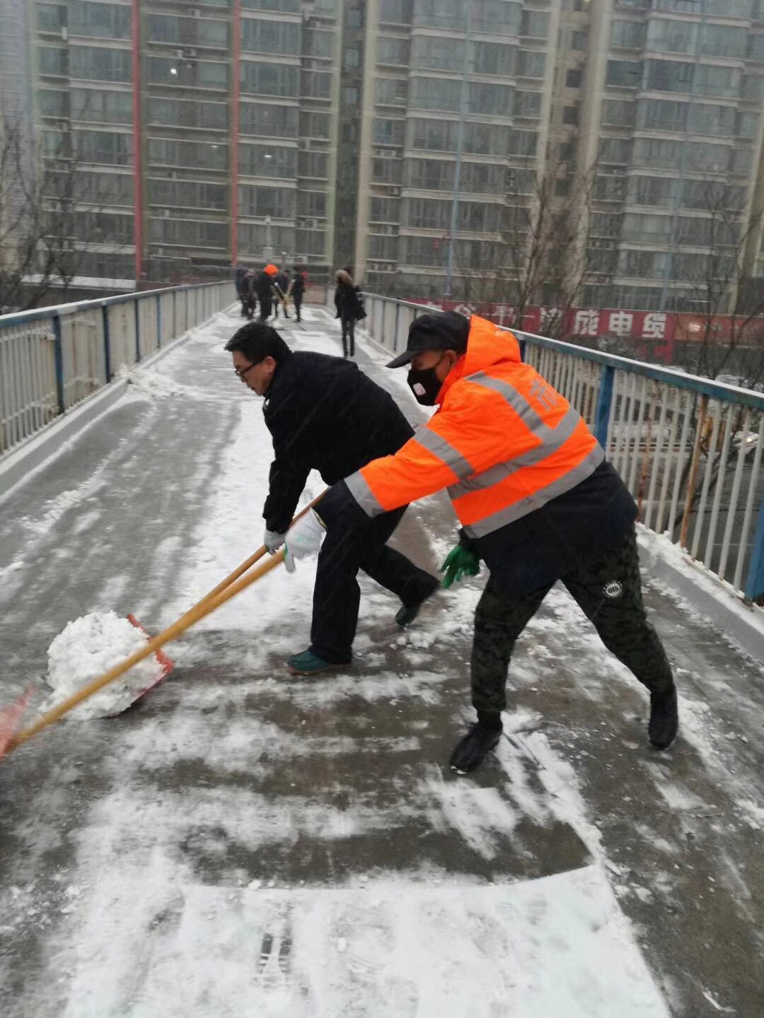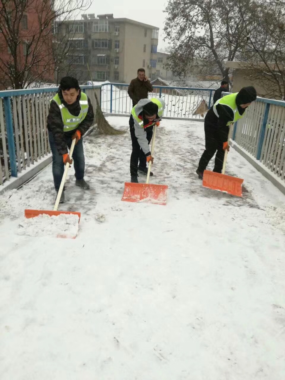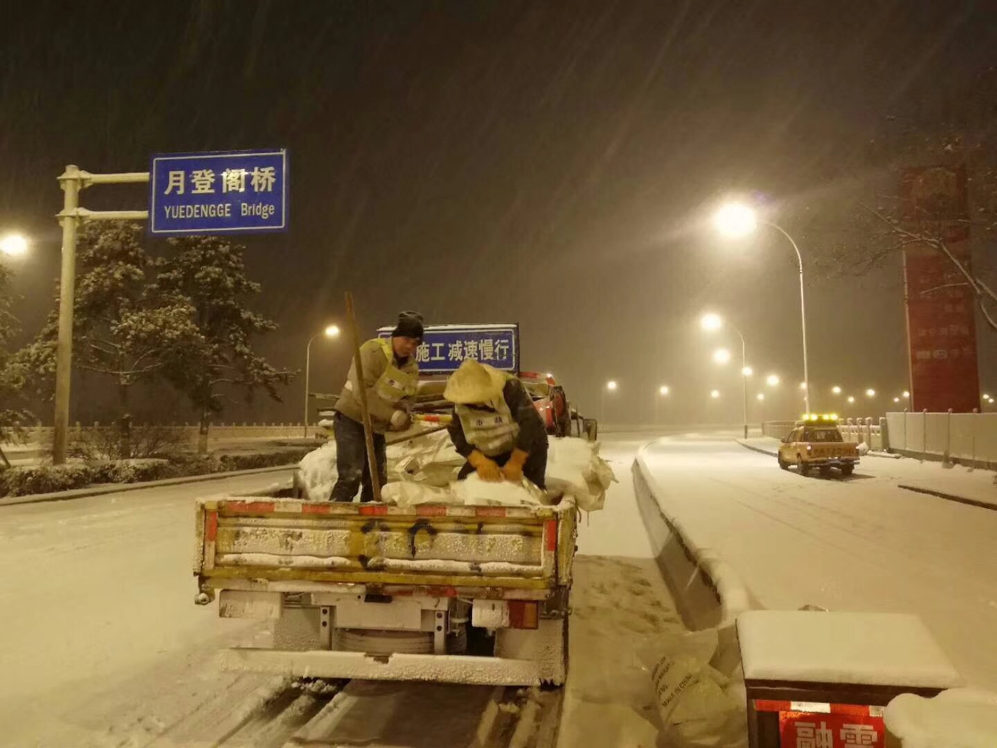我市于1月3日下午15时许迎来2018年初次降雪,根据降雪情况,设施局于1月3日下午17时和4日凌晨4时两次通过设施局监控指挥中心发布融雪任务指令,各责任单位对所辖区域内立交桥、地下通道、人行天桥及重要路段进行加强巡视。由于本次降雪持续时间长、降雪量大,为确保设施安全运行,设施局各责任单位分别于3日下午17时、晚上22时、4日凌晨4时三次集中进行消除冰雪工作,防止路面结冰。