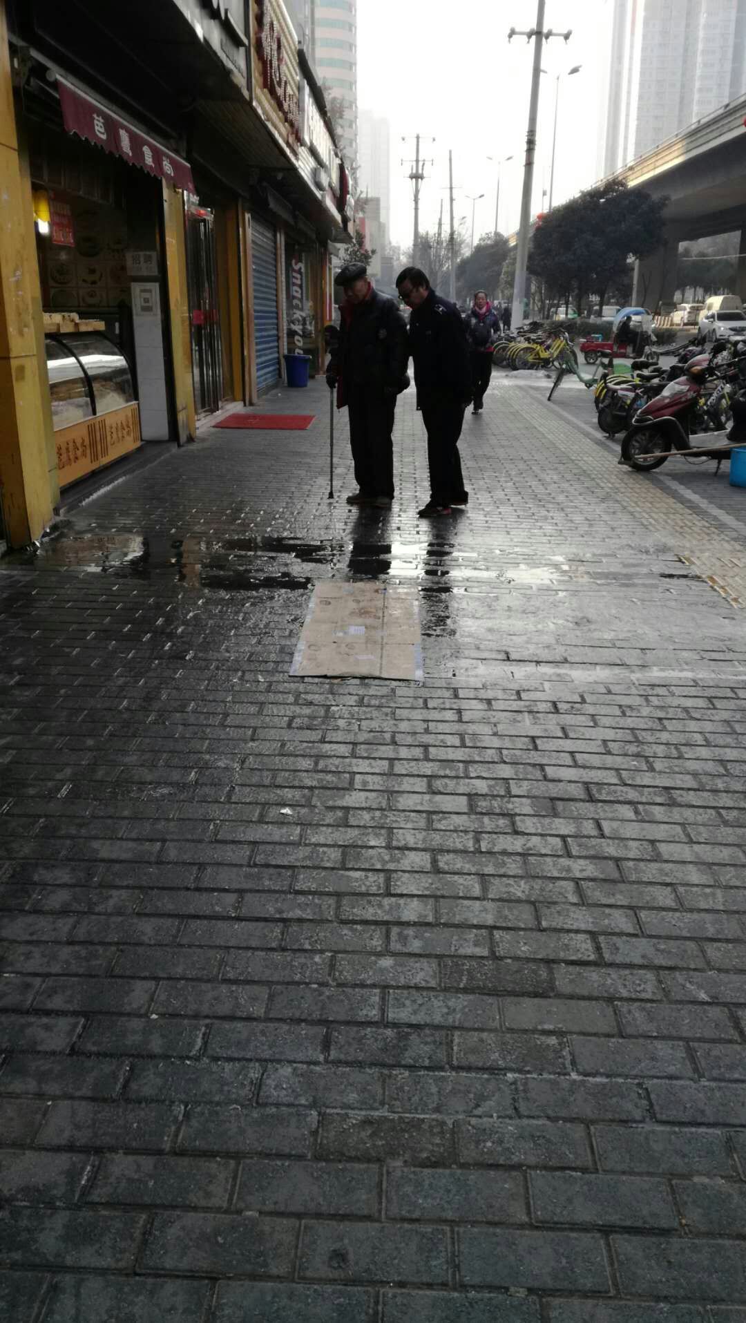 热心帮助过路老人? 积极处理路面结冰