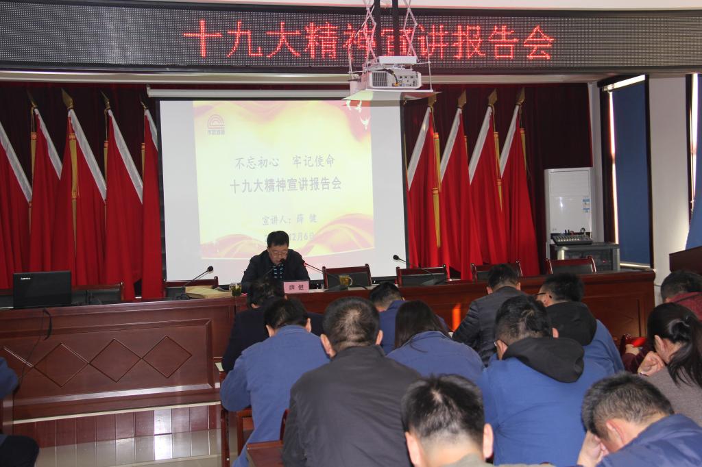 为了认真学习党的十九大精神,2017年12月6日下午,西安市政设施管理局道桥建设有限公司总经理薛健在轨道分公司三楼会议室为道桥一分公司、道桥二分公司、道桥六分公司和轨道分公司100余名党员宣讲了党的十九大精神,他结合道桥公司的实际情况,从八个方面对党的十九大精神进行解读,报告通俗易懂,深入浅出,广大党员干部听后感受深刻,表示会后要继续认真学习党的十九大精神,以实际行动为道桥公司的发展贡献自己的力量。会后,他还面向广大党员干部通报道桥公司2017年的工作完成情况和2018年道桥公司的工作计划。