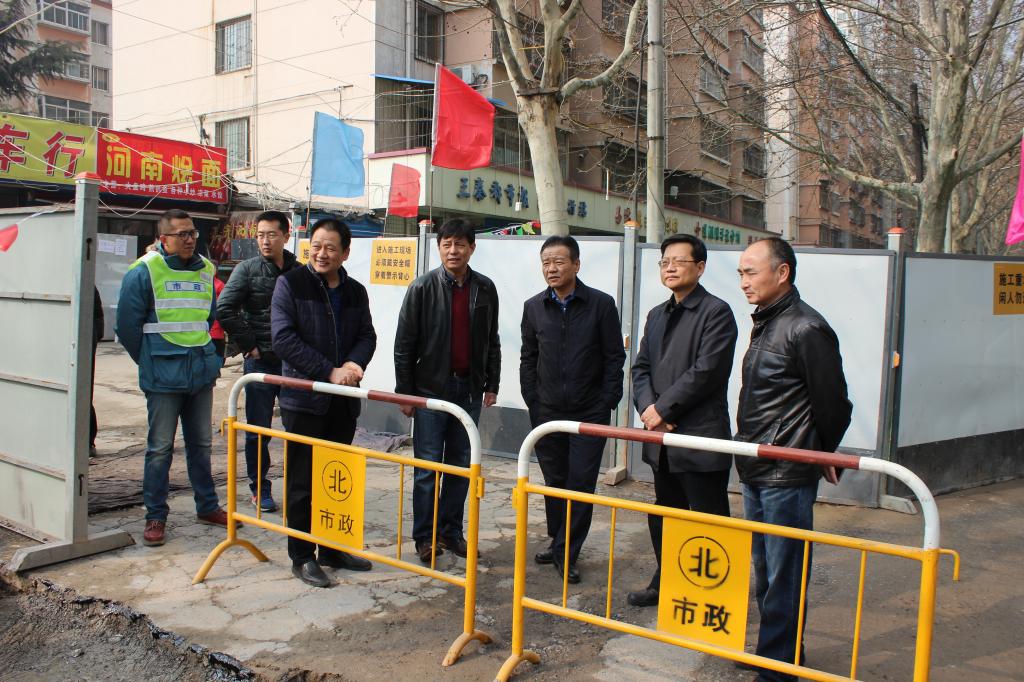 3月16日上午,市政公用局局长贺简政带队,设施局局长王军、副局长上官柏年陪同,来到北郊公司龙首北路工地,对在建的人行道提升改造工程进行检查。