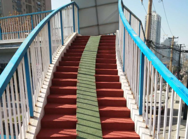 11月25日,为期一月的互助路东口人行天桥桥面陶瓷颗粒改造工程顺利完工。