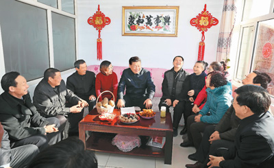2017年1月24日,中共中央总书记、国家主席、中央军委主席习近平来到河北省张家口市,看望慰问基层干部群众,考察脱贫攻坚工作。图为习近平在张北县小二台镇德胜村徐海成家同村干部和村民代表座谈。 新华社记者 兰红光摄 |